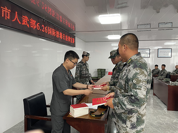 为进一步弘扬法治精神,强化官兵法治思维,为聚力强军兴军提供法治保障。6月23日上午,扶余市人民法院组织干警走进吉林省扶余市人民武装部,开展国际禁毒日普法宣传活动,并为官兵们送去了《民法典》书籍。