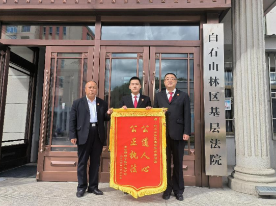 正义之声网 近日,吉林省白石山林区基层法院成功化解一起涉企诉讼案件,帮助辖区企业挽回经济损失四十余万,该公司为表达对法院工作的肯定,特为法官干警制作了锦旗送至法院。