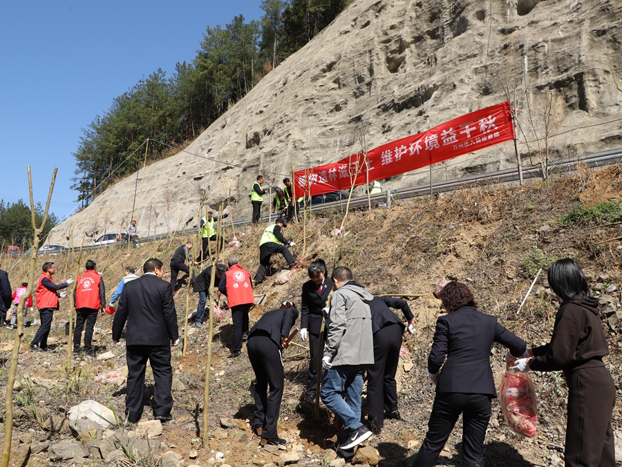 万州区检察院在案发地开展补植复绿活动