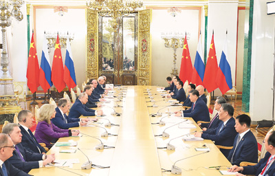 习近平指出,近年来,在双方共同努力下,中俄关系保持稳定、健康、高水平发展态势,长期睦邻友好、互利合作共赢成为两国关系的鲜明特征。两国政治互信根基越扎越深,务实合作纽带越系越牢,人文交流和地方交往越来越红火,新时代的中俄关系更加从容自信、稳定坚韧。历史和现实充分证明,持续发展和深化中俄关系,是传承两国人民世代友好的应有之义,是双方彼此成就、促进各自发展振兴的必然选择,也是捍卫国际公平正义、推进全球治理体系改革的时代呼唤。