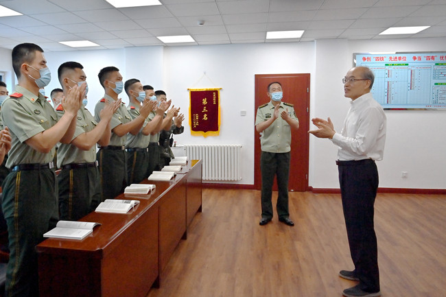 “无论酷暑严寒,各位战士赤诚奉献,默默坚守在岗位上,精准、优良地完成了各项急难险重任务,这无形中激励着最高检全体干警更好地履行法律监督职责,为党和人民贡献应有的力量。”在学习室,张军与驻院武警官兵一一握手、亲切交谈。在革命、建设、改革各个历史时期,人民军队牢记初心使命,听党话、跟党走,取得一个又一个辉煌胜利,为党和人民建立了不朽功勋。近年来,党绝对领导下的检察事业取得了新进步、新成效,同样离不开武警官兵的大力支持和辛勤付出。特别是常态化疫情防控工作中,驻院武警官兵冲锋险重在前、勇挑重担,为保障最高检机关各项工作有序高效运转作出了特殊贡献,展现了当代军人优良传统和时代风采。