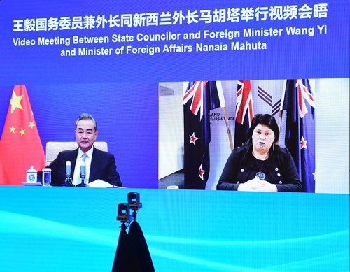2021年6月22日,国务委员兼外长王毅同新西兰外长马胡塔举行视频会晤。