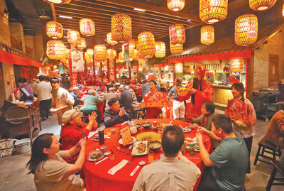 江苏南京市的一家餐馆里座无虚席,生意兴隆。