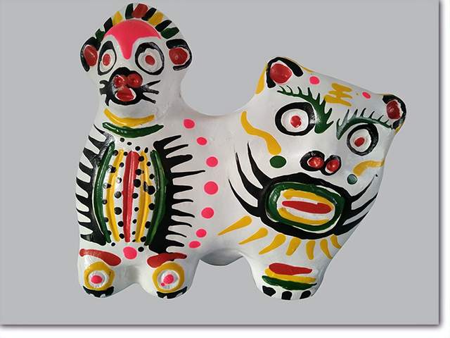 泥泥狗是河南淮阳太昊陵“人祖会”中泥玩具的总称,是一种原始图腾,文种抽象、变形的多种怪兽复合体共约200余种。“泥泥狗”因其造型古拙、荒诞,在众多民间艺术具有独特的艺术魅力。