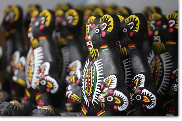 一方水土养育一方人,就地取材是淮阳泥泥狗的一个特色。在进行搓坯时,张华伟需要提前挖一块和好的胶泥,把胶泥块搓成形状大小都与成品相近似的坯子,然后用手工捏制而成,晾干后染黑色底。