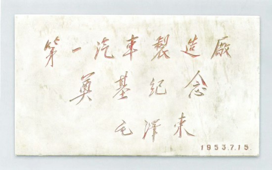 刻有毛泽东题词的第一汽车制造厂奠基石