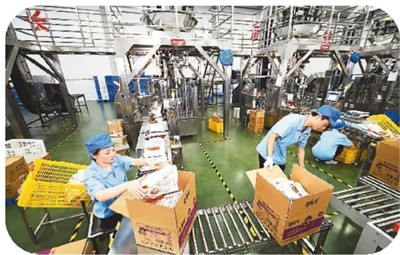 6月28日,湖南省岳阳市平江高新技术产业园,劲仔食品平江生产基地的员工将鳀鱼产品装箱。 |