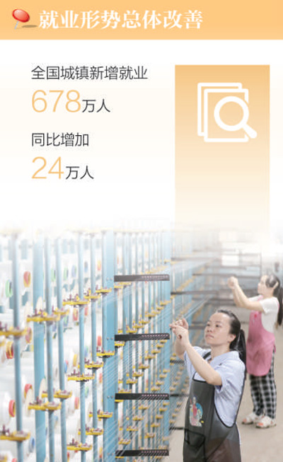 就业是民生之本。今年以来,稳就业政策持续显效,劳动力市场趋于活跃,就业形势总体改善。上半年,全国城镇新增就业678万人,同比增加24万人。