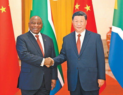 习近平指出,中非合作论坛是南南合作的典范和引领国际对非合作的一面旗帜。中非双方将在本次峰会上确立新时代中非关系新定位,共商携手推进现代化的具体路径。中国共产党二十届三中全会对完善高水平对外开放体制机制作出部署,中国对非洲国家开放的大门将越开越大。中方愿同南非等非洲国家不断打造合作新动能,促进中非合作高质量发展,中非合作的快车必将越跑越快、越跑越好。