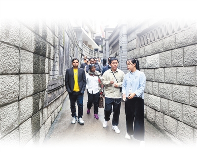考察团成员在重庆市渝中区山城巷近距离感受历史文化魅力。 |