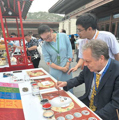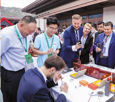 7月3日,第三届文明交流互鉴对话会暨首届世界汉学家大会与会嘉宾体验鲁派内画。 |