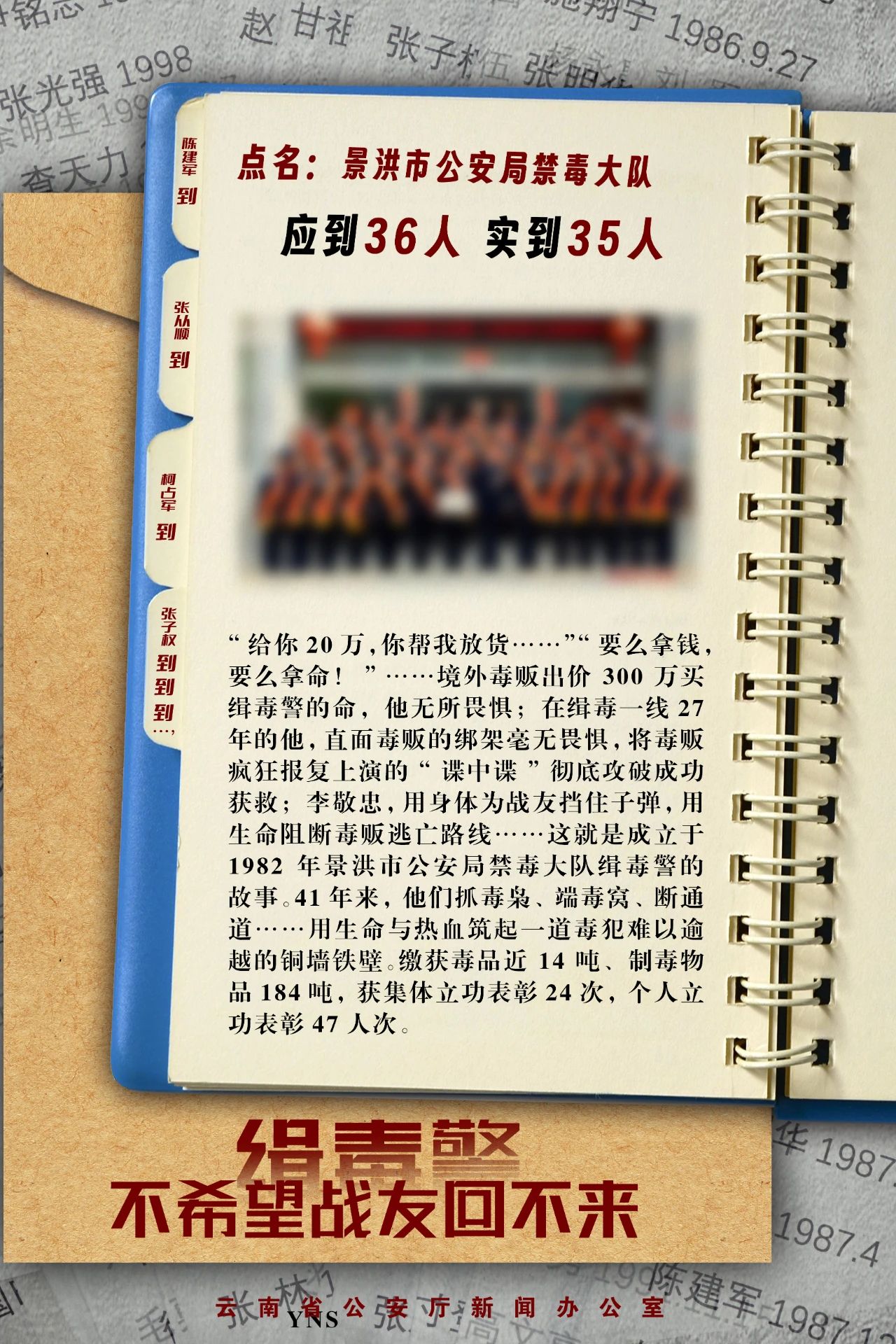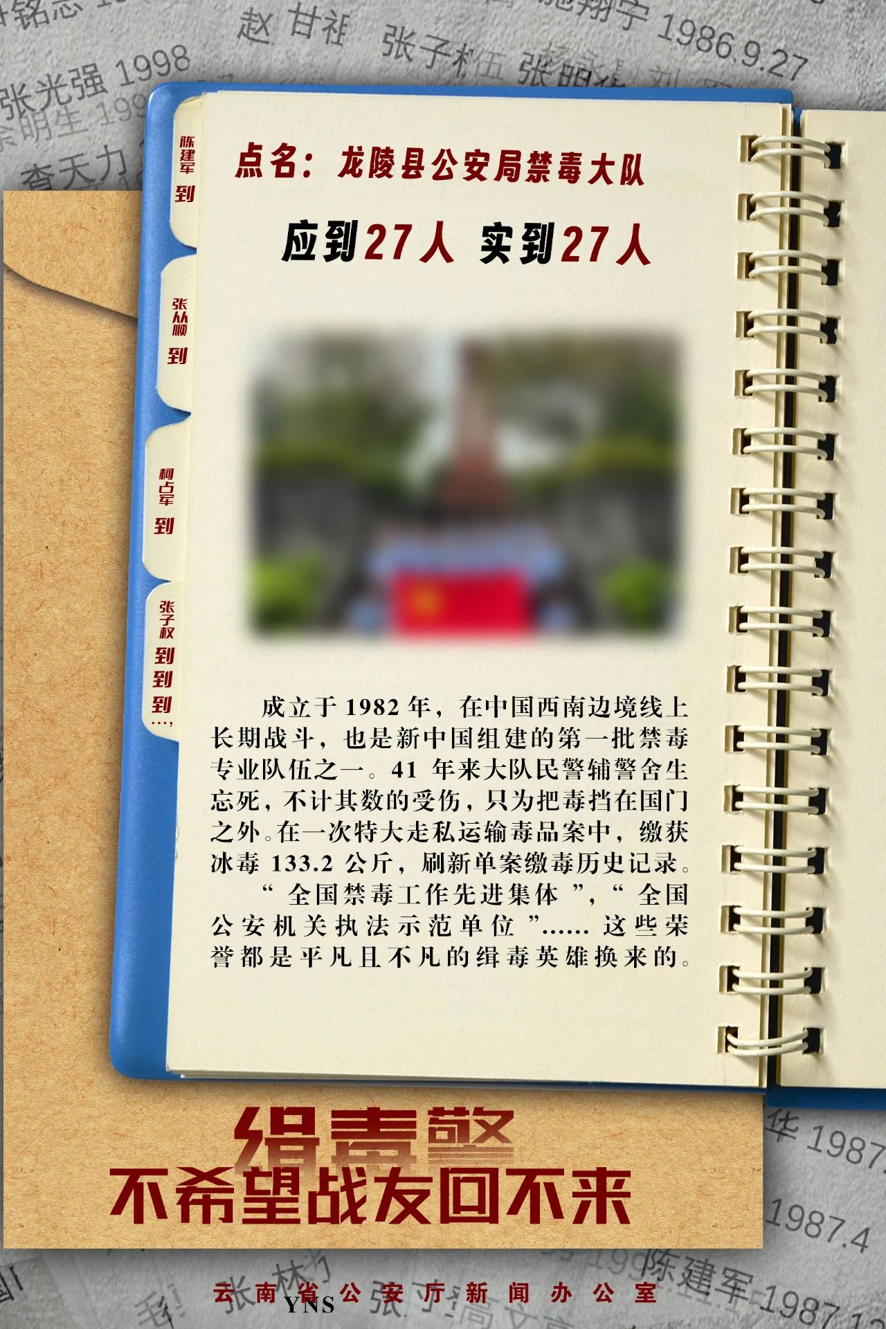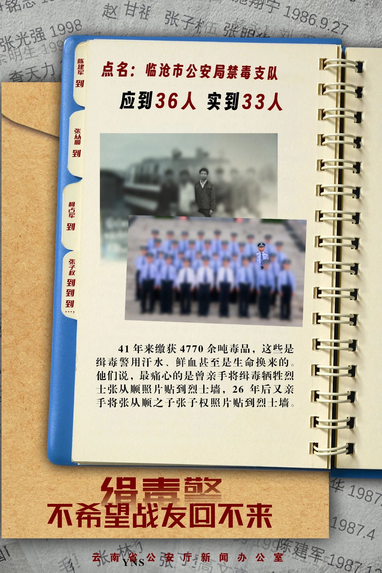 点名:临沧市公安局禁毒支队,应到36人,实到33人……