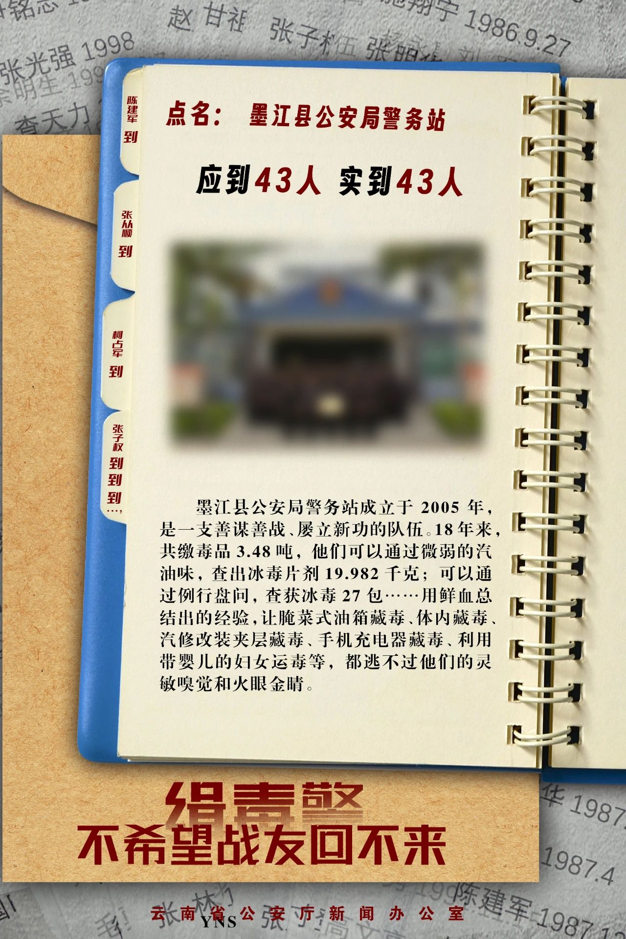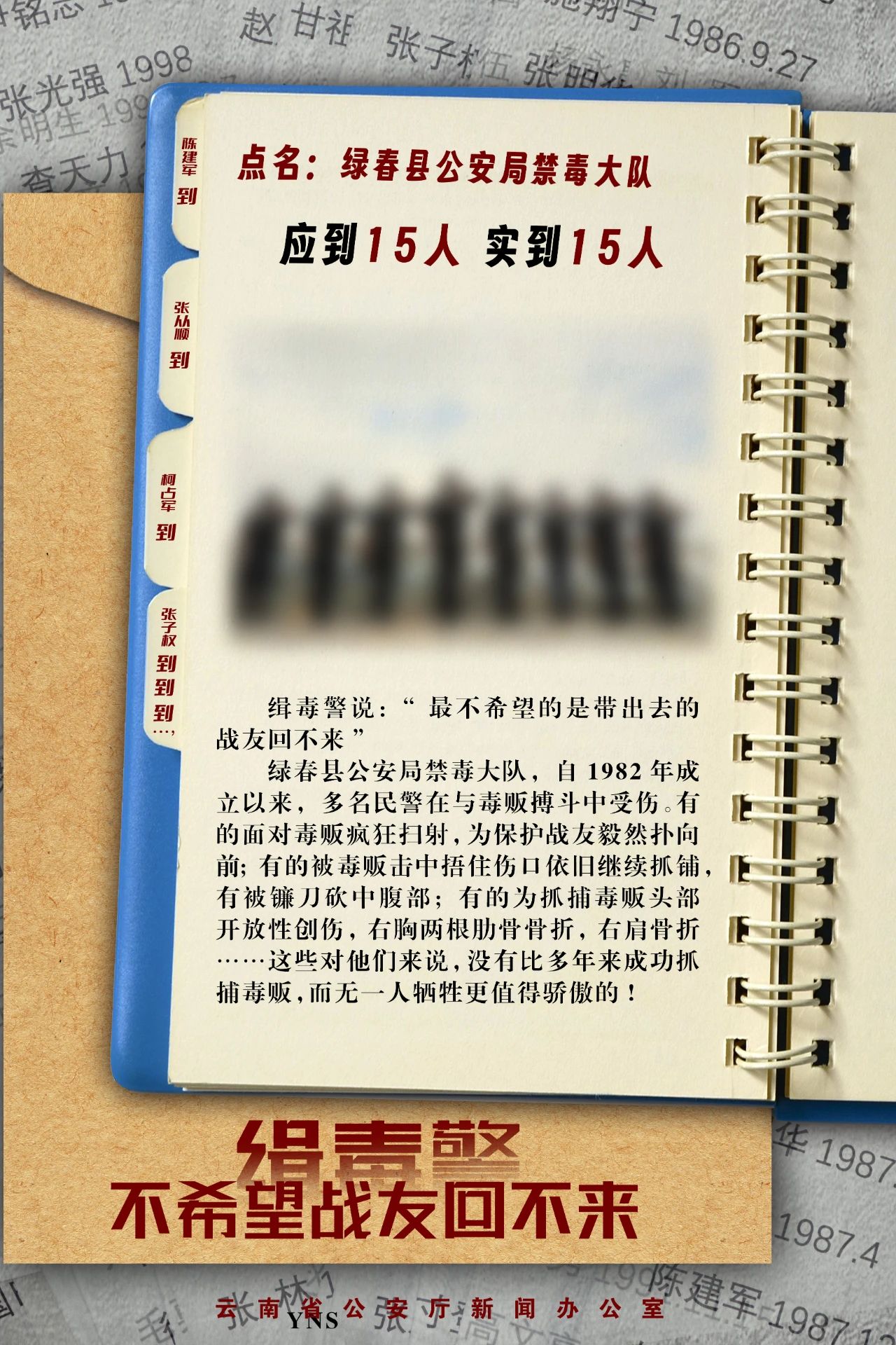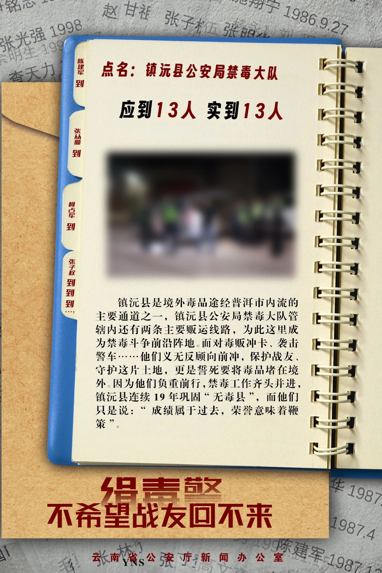 点名:临沧市公安局禁毒支队,应到36人,实到33人……