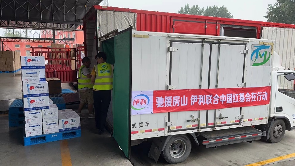 ▲中国红十字基金会联合伊利集团向北京房山、门头沟捐赠矿泉水