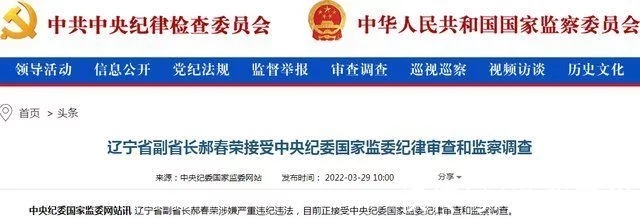 中央纪委国家监委网站讯 辽宁省副省长郝春荣涉嫌严重违纪违法,目前正接受中央纪委国家监委纪律审查和监察调查。