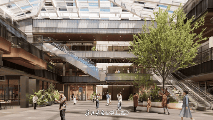 项目以南阳化纤厂旧址更新为背景,由知名建筑团队MAS上海奇显建筑设计有限公司设计,采用开放式街区形态,打破传统“盒子商业”的封闭感。玻璃幕墙、错落屋顶与绿植覆盖勾勒出现代美学,同时保留百年古树与工业遗存,形成独特的文化记忆点。动线以“攀、迴、逛、游、憩”为叙事,营造“一步一景,一景一故事”的沉浸体验 。