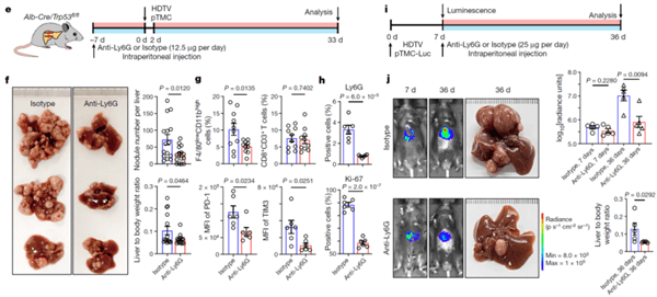 Anti-Ly6G抗体去除中性粒细胞可以有效缓解小鼠肝癌生长
