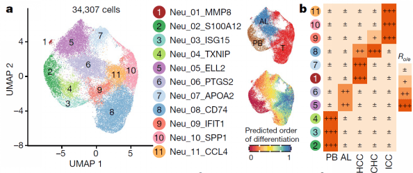 中性粒细胞亚群的组织分布、发育轨迹和癌种富集