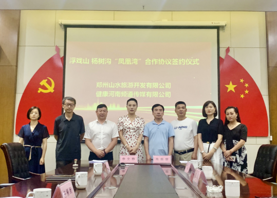 正义之声网讯【魏晨龙 马敏】2023年8月4日,健康河南频道传媒有限公司与郑州山水旅游开发有限公司关于《巩义市新中镇杨树沟“凤凰湾”》项目签约仪式在郑州市永和国际广场4楼会议室隆重召开。健康河南频道产业中心总监韦振堂、行政中心总监黄晓蓓、外联中心副总监张少阳,郑州山水旅游董事李文静、集团总顾问姚建忠、副总王振武、设计部经理刘晓等人出席签约仪式。
