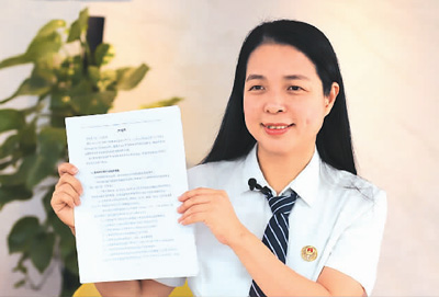 深圳市公证处工作人员展示生前预嘱公证书样本。 |