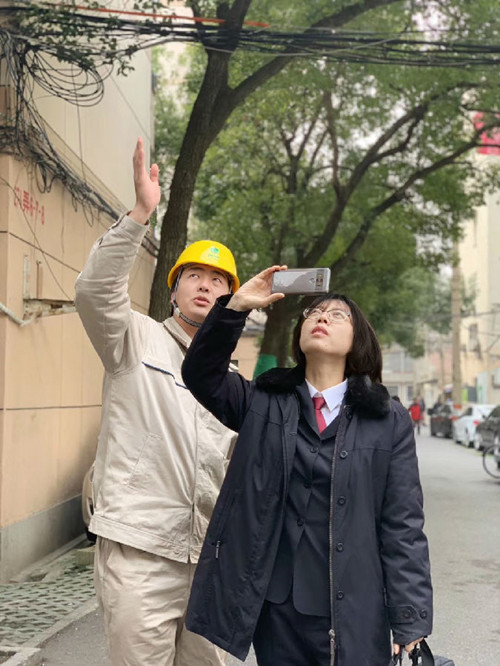 王璐回访居民小区,查看案件办理后续的问题解决情况。